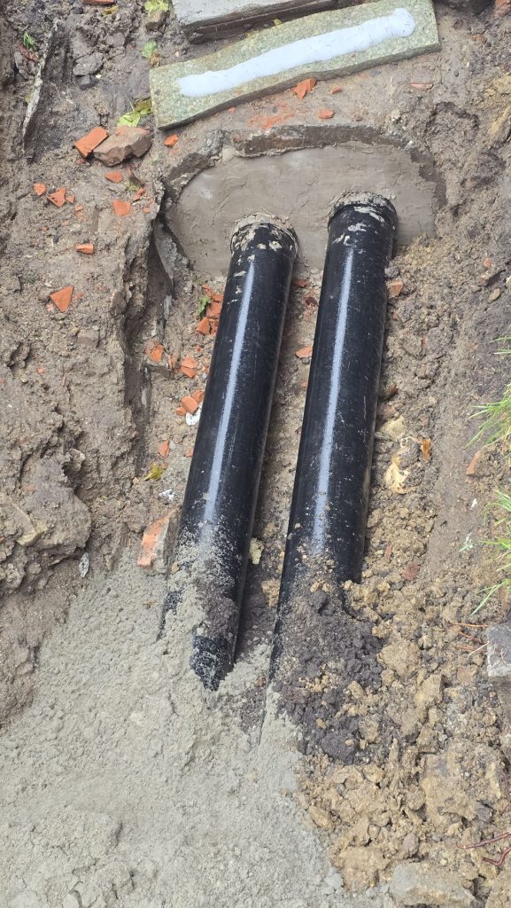W ramach zadania ułożyliśmy nowe odcinki sieci o średnicach DN100 mm i DN80 mm o łącznej długości 85 metrów. Wykonaliśmy też odwodnienie rurami DN40 mm i odprowadzenie do kanalizacji deszczowej.