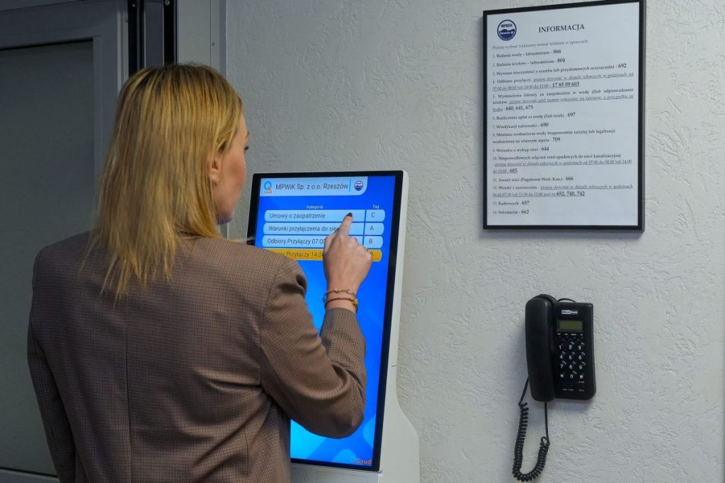 Przy wejściu do korytarza BOK ustawiono nowoczesny kolejkomat. Można tu wybrać temat oczekiwanej obsługi. To m.in. informacje dotyczące przyłączeń do sieci wodociągowo-kanalizacyjnej na terenie Rzeszowa oraz części gminy Boguchwała, umówienie terminu odbioru wykonanych prac przy budowie przyłączy, uzyskanie protokołu odbioru, zawarcie umowy z MPWiK. Klienci mają dostęp do Biura Podawczego, gdzie mogą pozostawić dokumenty, złożyć wnioski w interesujących ich sprawach oraz do kasy, w której mogą bez dodatkowych opłat regulować płatności faktur. Pracę kolejkomatu uzupełnia umieszczony w pobliżu telefon wraz z wykazem numerów i opisem spraw z jakimi najczęściej zgłaszają się interesanci. W tym miejscu można uzyskać informacje od pracowników bezpośrednio zajmujących się wybranymi tematami.
