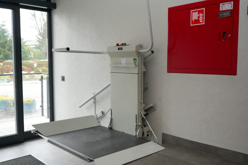 – Tuż za wejściem do budynku znajduje się kilka schodów, które były przeszkodą nie do przejścia dla osób niepełnosprawnych poruszających się na wózkach, dlatego tam zaproponowaliśmy naszym klientom nowoczesną windę, która unosi wózek na odpowiedni poziom i umożliwia spotkanie z naszym pracownikiem bez dodatkowej pomocy asystentów w pokonywaniu barier. Przed wejściem do budynku mamy też nowy podjazd dla wózków – mówi Jakub Czapkowski z Działu Sprzedaży i Gospodarki Wodomierzowej.