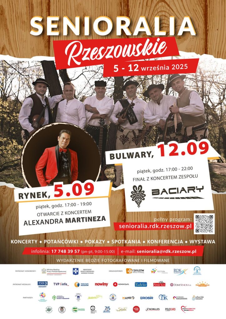 W dniach 5 – 12 września 2025 roku odbędą się tegoroczne Senioralia Rzeszowskie, w ramach, których na terenie całego Rzeszowa zorganizowanych zostanie ponad 30 wydarzeń o różnorodnej tematyce, adresowanych do mieszkańców powyżej 60 roku życia. Tygodniowy cykl zainauguruje występ Alexandra Martineza na rzeszowskim Rynku, natomiast wielkim finałem będzie koncert zespołu Baciary na miejskich bulwarach.